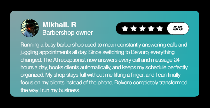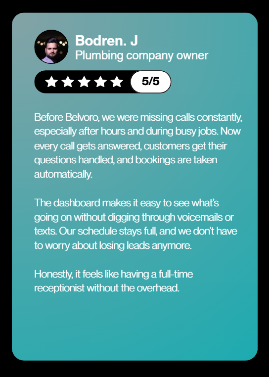 Built to answer calls, book appointments, qualify leads, route customers, and run your front desk 24/7.